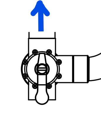 As you can see from the attached image, the water flows out of the valve in the direction that the handle "points." Consequently, to bypass the TJ-16, you will want the turn the handle perpendicular to the inlet pipe with the pointer in the direction of the bypass loop.